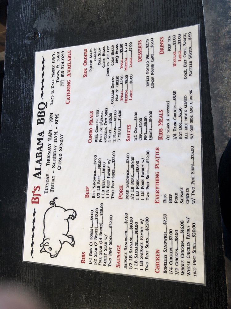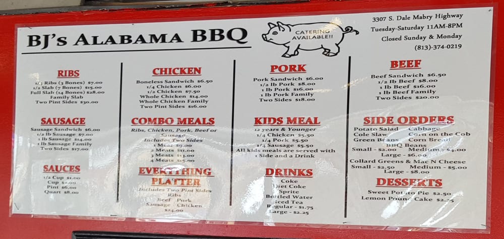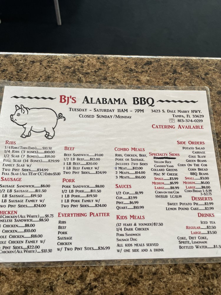 BJ's Alabama BBQ, located in Tampa, FL, is a black-owned and women-owned barbecue spot that offers a true taste of the South. With options for delivery, takeout, and catering, this casual restaurant provides a welcoming atmosphere for all.