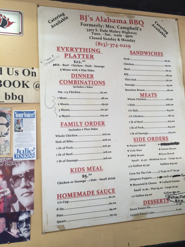 BJ's Alabama BBQ Menu